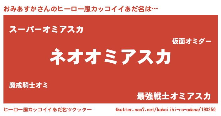 | 胡散臭い通販商品みたいなあだ名 | 『来世でも幸せになれる健康食品…その名も「おみあすか」』 |