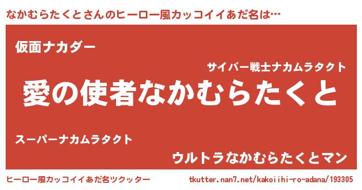 | 男性向けラノベタイトル風あだ名 | 『なかむらたくとに滅ぼされるだけの簡単なお仕事です』 |