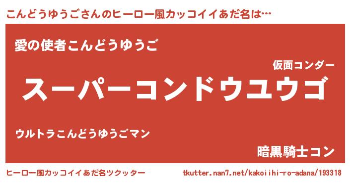 | 男性向けラノベタイトル風あだ名 | 『こんどうゆうごの憂鬱』 |