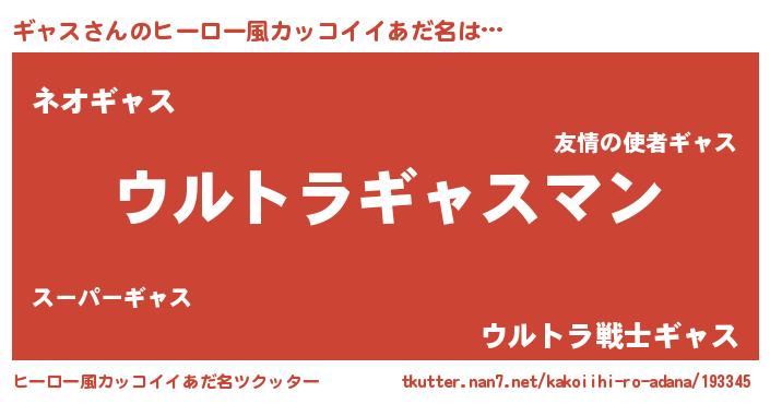 | 男性向けラノベタイトル風あだ名 | 『ギャス~年齢イコール彼女いない歴の魔法使い~』 |