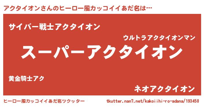 | ヘコむあだ名 | 『アクにゅー』『アクタイオン(苦笑)』 |