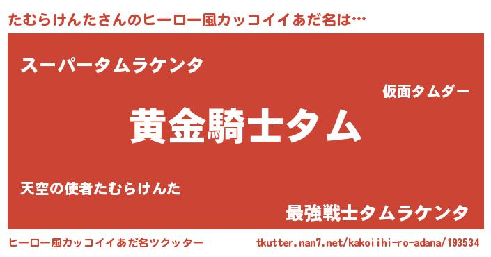 | 伝説のあだ名 | 『孤高の遊び人たむらけんた』 |