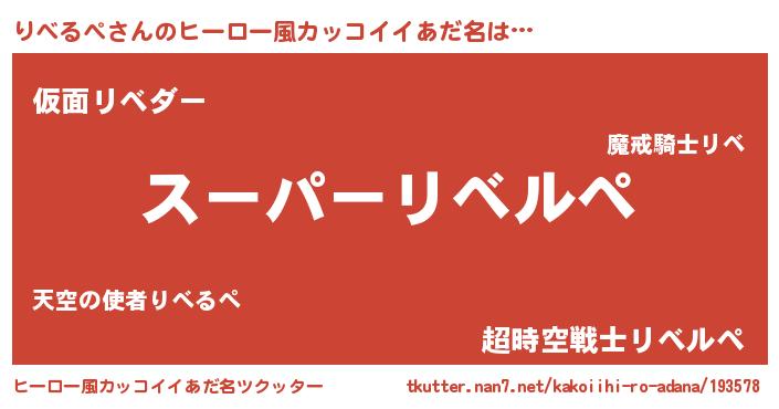 | 男性向けラノベタイトル風あだ名 | 『りべるぺの憂鬱』『魔弾の王とりべるぺ』 |