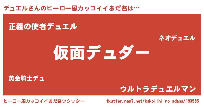 デュエルさんのヒーロー風カッコイイあだ名をツクッター!