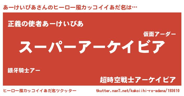 | 男性向けラノベタイトル風あだ名 | 『あーけいびあの憂鬱』 |
