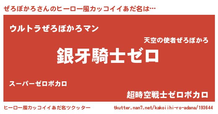 | 男性向けラノベタイトル風あだ名 | 『転生したらぜろぼかろだった件』 |