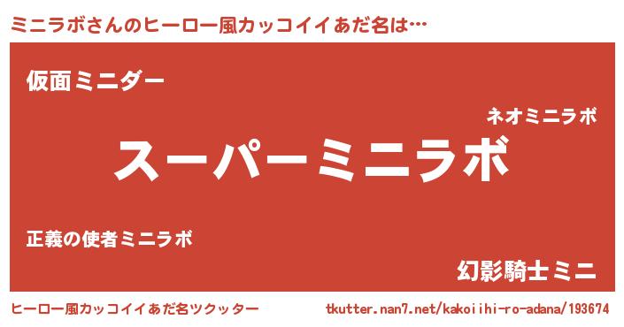 | 男性向けラノベタイトル風あだ名 | 『ミニラボスレイヤー』 |