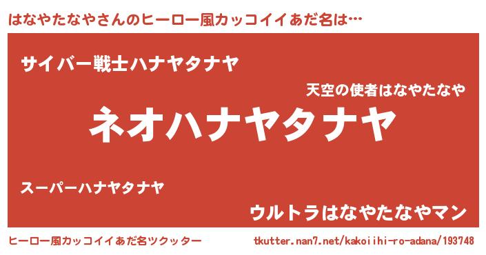 | 男性向けラノベタイトル風あだ名 | 『はなやたなやという概念が存在しない退屈な世界 』 |