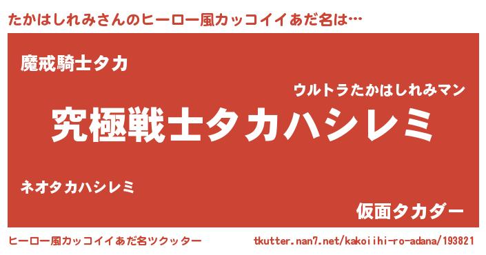たかはしれみさんのヒーロー風カッコイイあだ名をツクッター!