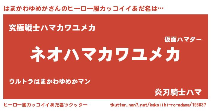 | 男性向けラノベタイトル風あだ名 | 『はまかわゆめかという概念が存在しない退屈な世界 』 |