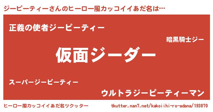 | 男性向けラノベタイトル風あだ名 | 『この素晴らしい世界にジーピーティーを!』 |