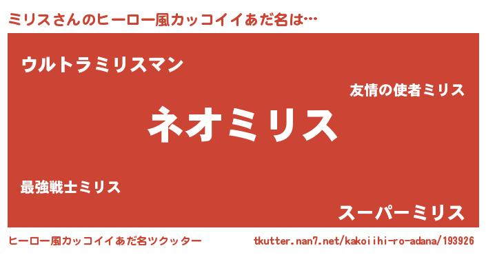 | 意味不明あだ名 | 『永久保存ミリス』『ミリスフォーエバー』 |