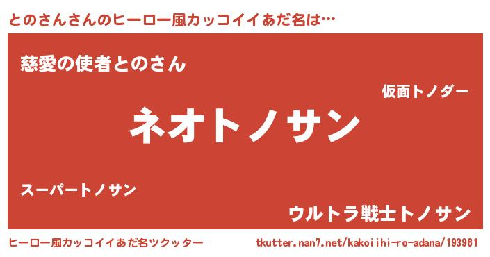| 意味不明あだ名 | 『永久保存とのさん』『ニラ科とのさん属』 |