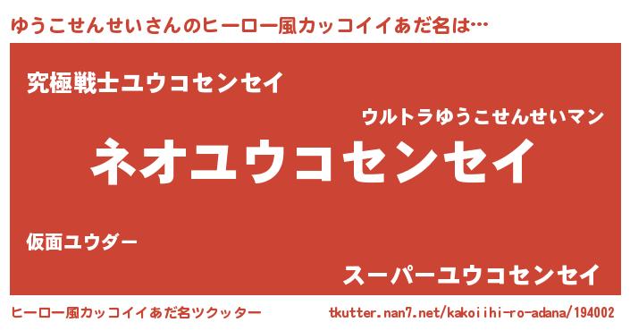 | 男性向けラノベタイトル風あだ名 | 『ゆうこせんせいという概念が存在しない退屈な世界 』 |