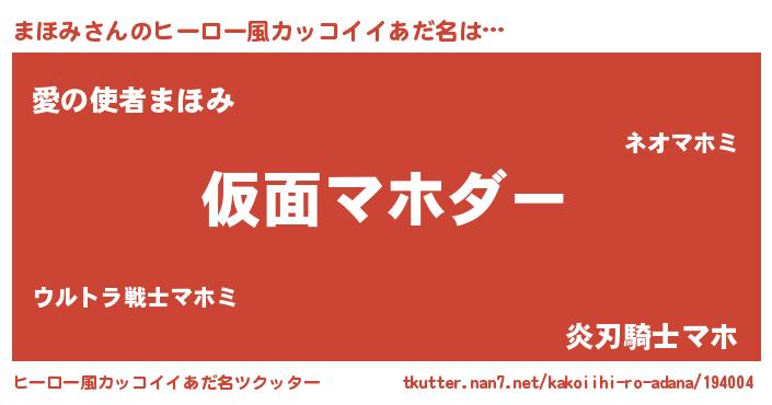 | ヘコむあだ名 | 『まほ太郎』『まほみ(苦笑)』『豆乳』 |