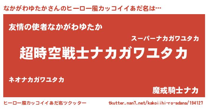 | 料理風あだ名 | 『なかがわゆたかごはん』 |