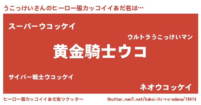 | 男性向けラノベタイトル風あだ名 | 『ダンジョンにうこっけいを求めるのは間違っているだろうか』 |