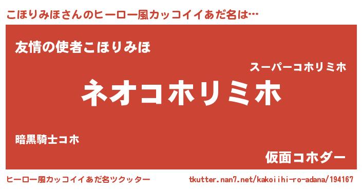 | ヘコむあだ名 | 『こほりみほ(苦笑)』『こほっふぃ~』 |