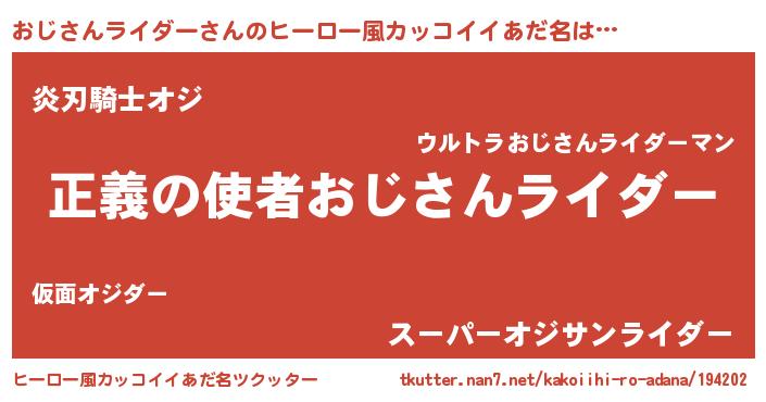 | 女子向けラノベタイトル風あだ名 | 『シンデレラおじさんライダー家の靴箱館』 |