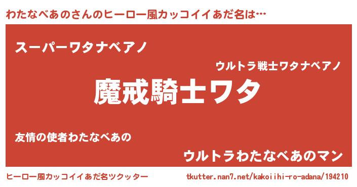 | 意味不明あだ名 | 『とにかく怪しいわたなべあの』 |