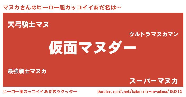| 意味不明あだ名 | 『住所不定無職マヌカ(3歳)』 |