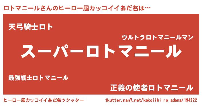 | 男性向けラノベタイトル風あだ名 | 『ロトマニールアートオンライン』 |