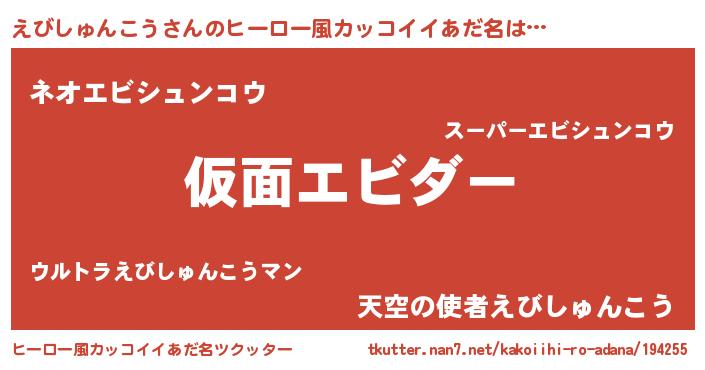 | 意味不明あだ名 | 『住所不定無職えびしゅんこう(50歳)』 |