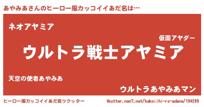 | 男性向けラノベタイトル風あだ名 | 『緋弾のアヤミア』『アヤミアスレイヤー』 |