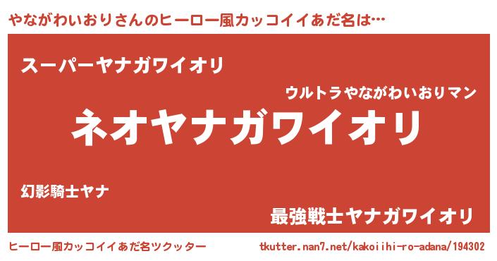 | ヘコむあだ名 | 『やながわいおり(笑)』『やなふぇ~』 |