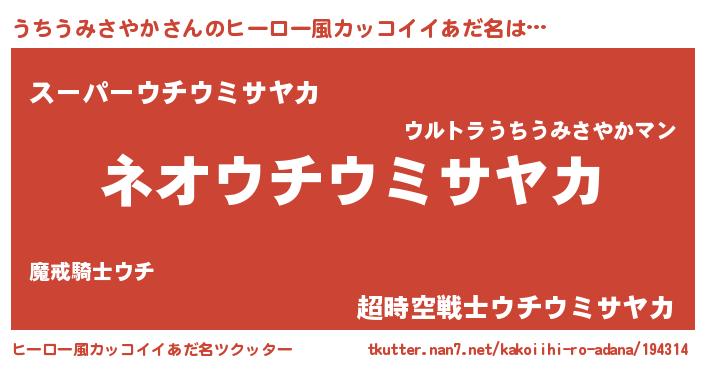 | 男性向けラノベタイトル風あだ名 | 『うちうみさやか~年齢イコール彼女いない歴の魔法使い~』 |