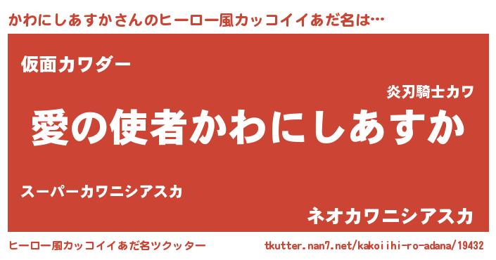 | 女子向けラノベタイトル風あだ名 | 『かわにしあすか恋絵巻』 |