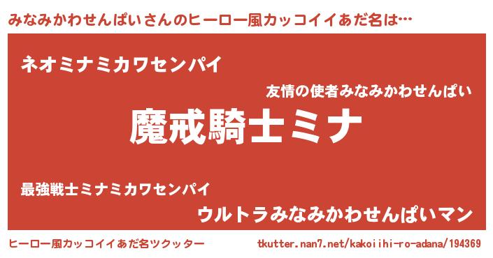 | 男性向けラノベタイトル風あだ名 | 『ダンジョンにみなみかわせんぱいを求めるのは間違っているだろうか』 |