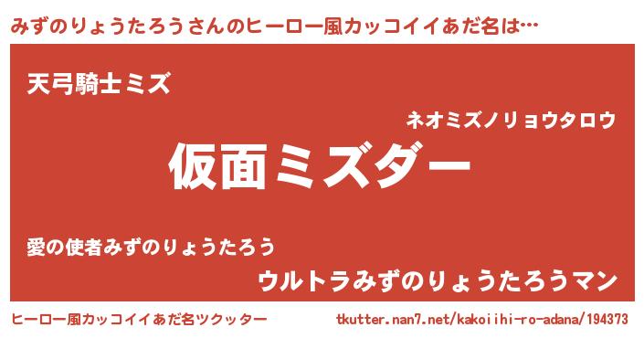 みずのりょうたろうさんのヒーロー風カッコイイあだ名をツクッター!