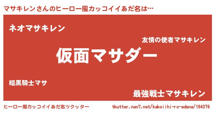 | 意味不明あだ名 | 『住所不定無職マサキレン(47歳)』 |