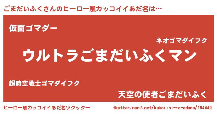 | 意味不明あだ名 | 『ごまだいふくフォーエバー』 |