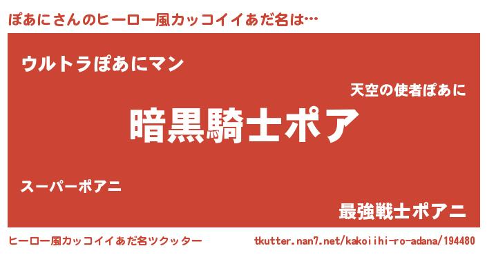 | 男性向けラノベタイトル風あだ名 | 『ダンジョンにぽあにを求めるのは間違っているだろうか』 |