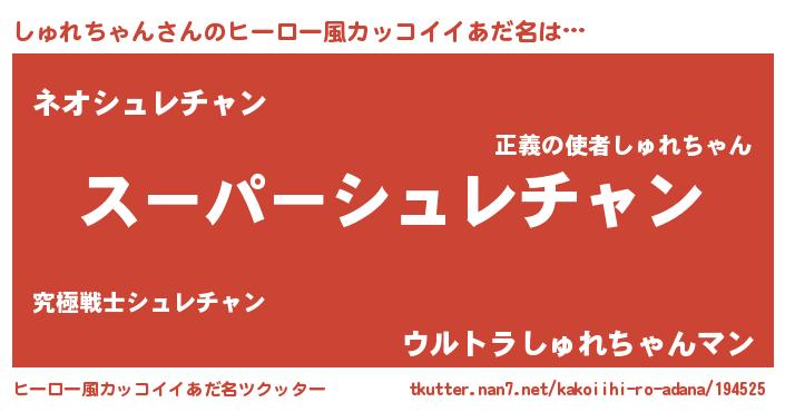 | ヘコむあだ名 | 『しゅにゅー』『しゅれちゃん(笑)』 |