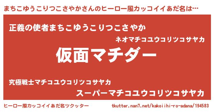 | 男性向けラノベタイトル風あだ名 | 『魔弾の王とまちこゆうこりつこさやか』 |