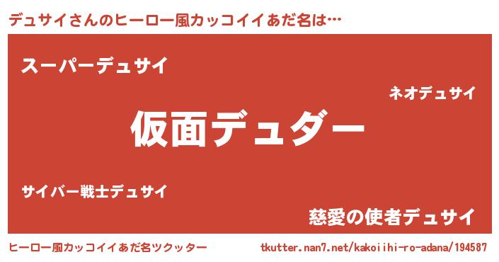 | 男性向けラノベタイトル風あだ名 | 『この素晴らしい世界にデュサイを!』 |