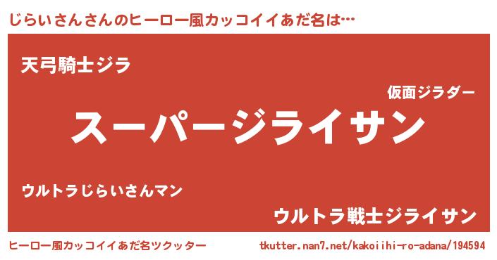 | 男性向けラノベタイトル風あだ名 | 『緋弾のジライサン』 |