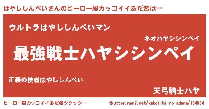| 意味不明あだ名 | 『自称はやししんぺい』 |
