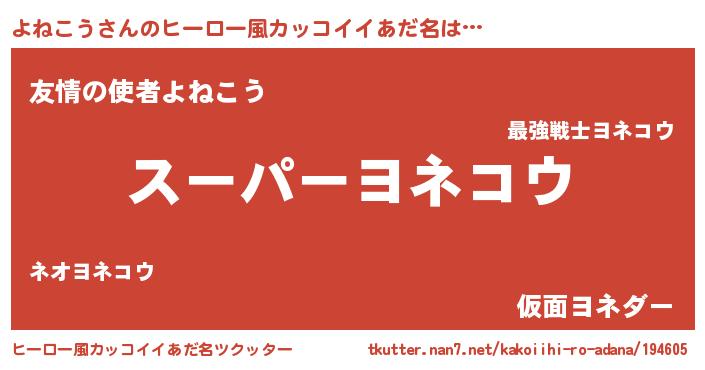 | 欧米人風あだ名 | 『マイケルよねこう』『ダニエルよねこう』 |