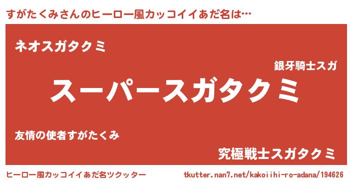 | 男性向けラノベタイトル風あだ名 | 『転生したらすがたくみだった件』 |