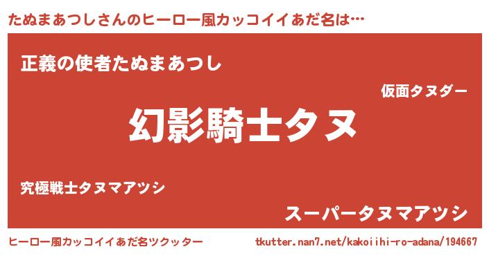 | ファンタジー風あだ名 | 『カークタヌラー』『ファントムタヌス』 |