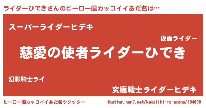 | 胡散臭い通販商品みたいなあだ名 | 『モンドセレクションを受賞したイリジウム磁石…その名も「ライダーひでき」』 |
