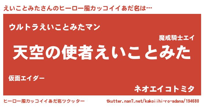 | 男性向けラノベタイトル風あだ名 | 『えいことみたに滅ぼされるだけの簡単なお仕事です』 |