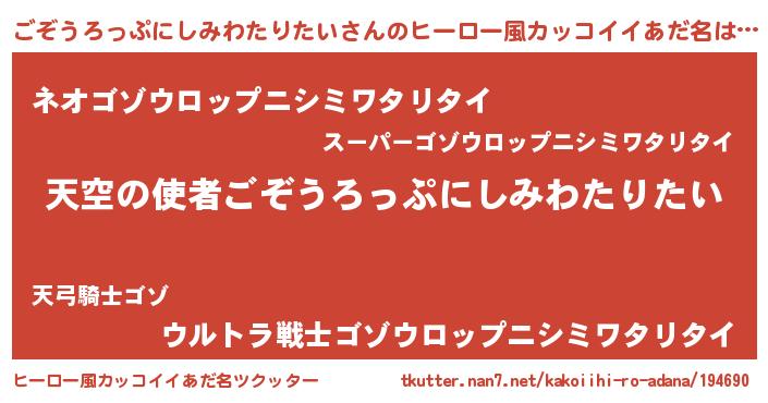 | ヘコむあだ名 | 『ごぞうろっぷにしみわたりたい(苦笑)』 |