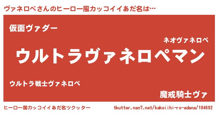 | 欧米人風あだ名 | 『ヴァネロペクリステル』 |