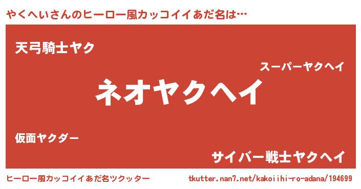 | 意味不明あだ名 | 『永久保存やくへい』『自称やくへい』 |
