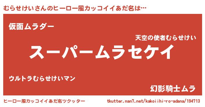 むらせけいさんのヒーロー風カッコイイあだ名をツクッター!